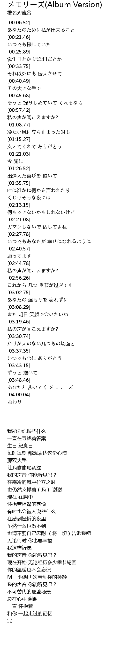 メモリーズ(Album Version)