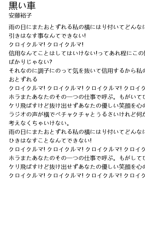 | Song | 黒い車 |