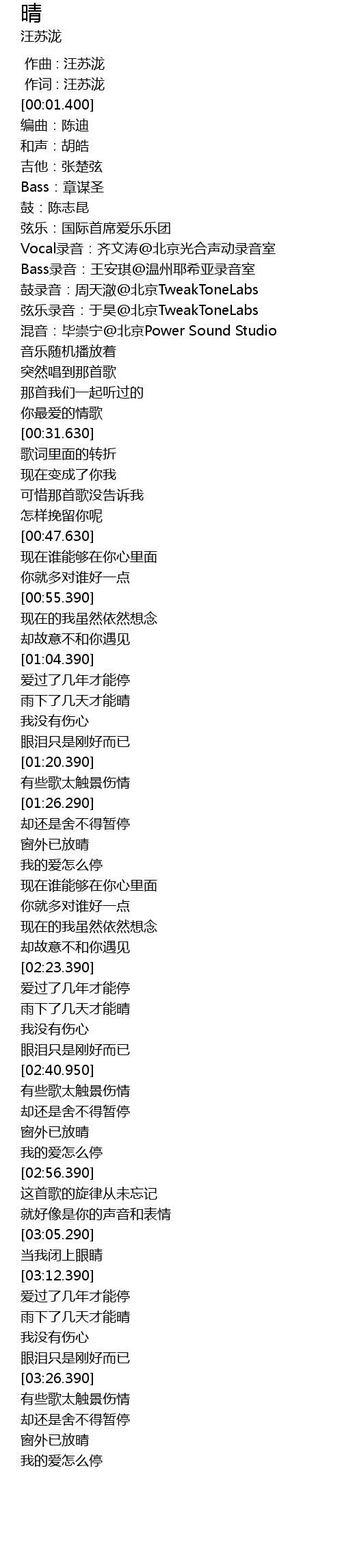 | [01:31.090] | 窗外已放晴 |