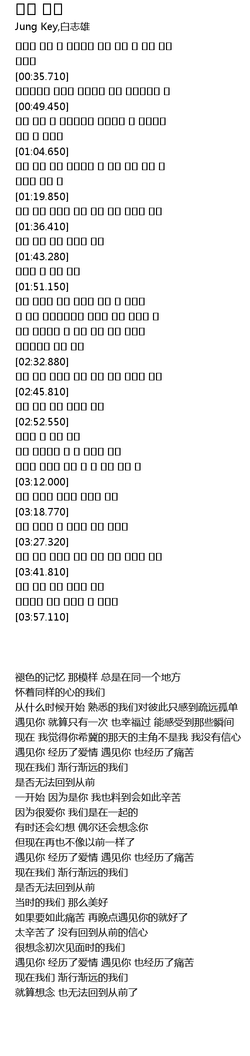 바래진 기억 그 모습에는 항상 같은 곳 같은 맘인 우린데 |