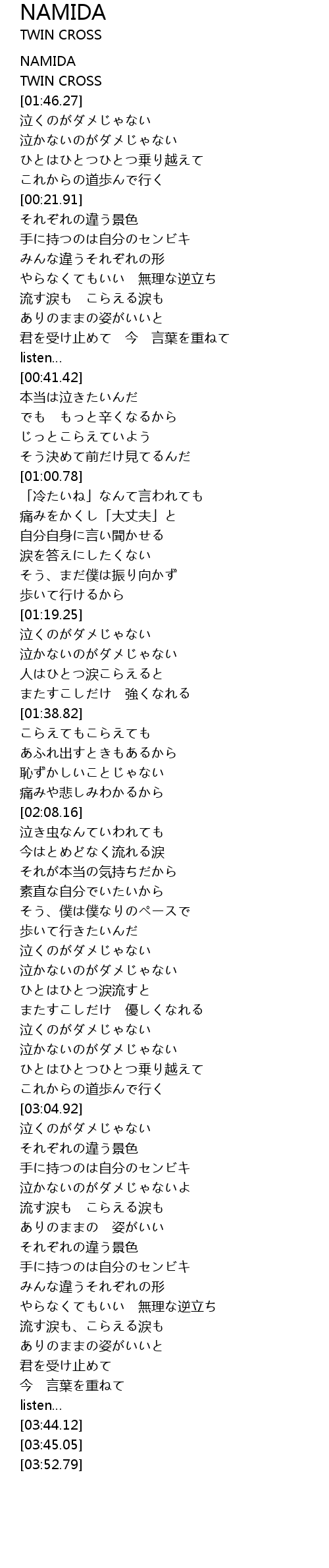 | [01:41.49] | NAMIDA |