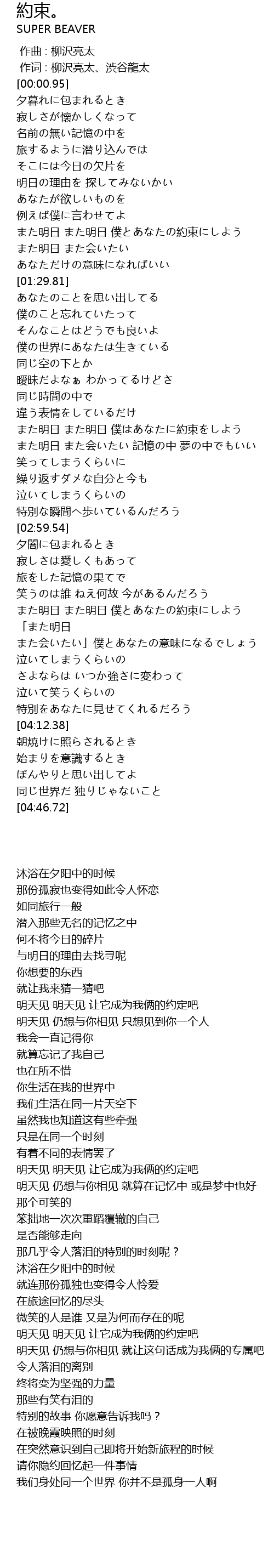 | [03:27.72] | また明日 また明日 僕とあなたの約束にしよう |