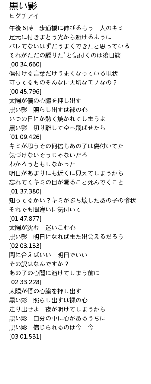 | [02:50.612] | 黒い影 自分の中に心があるうちに |