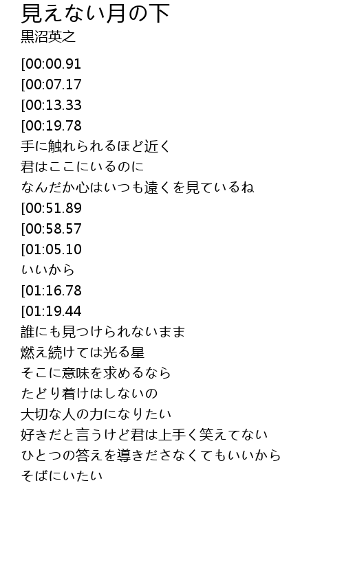 | [03:32.39][00:07.17] | 月もない帰り道 |