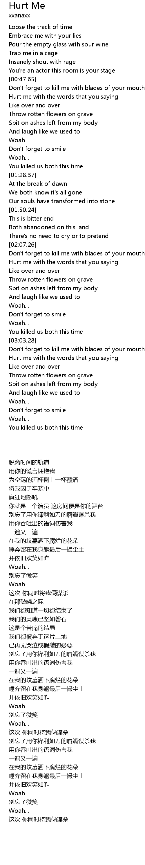| [03:11.65] | Don't forget to kill me with blades of your mouth |