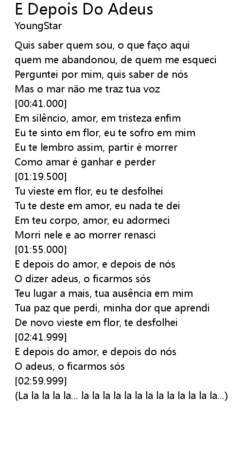 | [02:42.000] | E depois do amor, e depois do nó s |