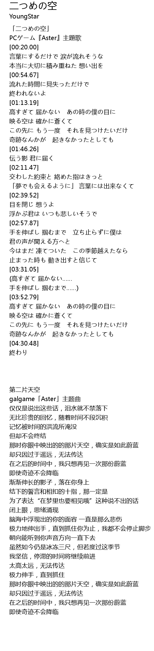 | [00:04.00] | PCゲーム『Aster』主題歌 |