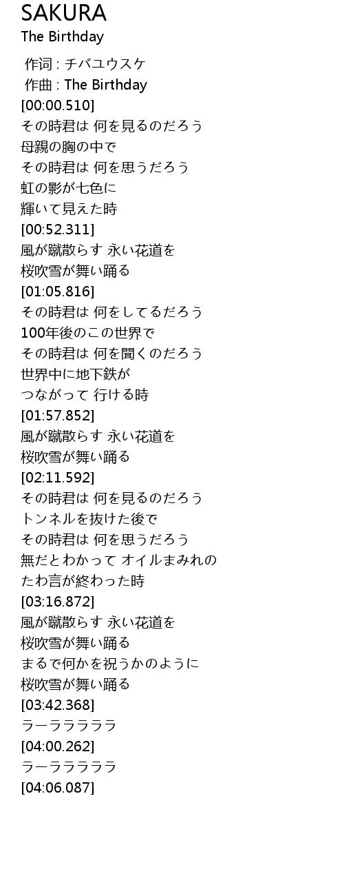 作曲 : The Birthday |