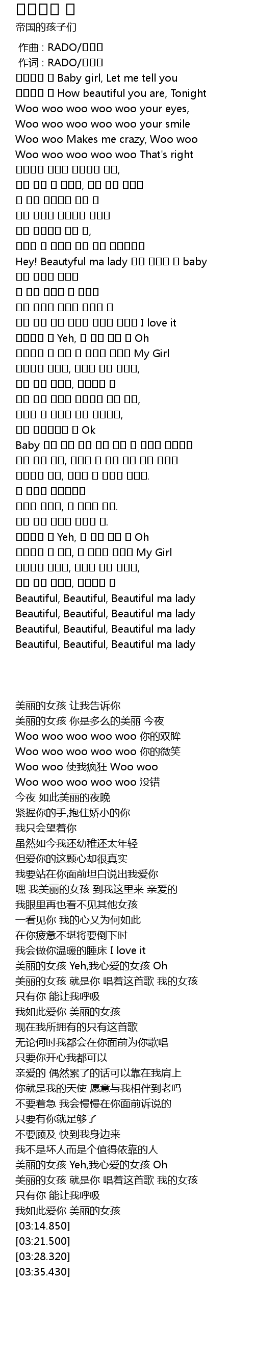| [03:21.500] | Beautiful, Beautiful, Beautiful ma lady |