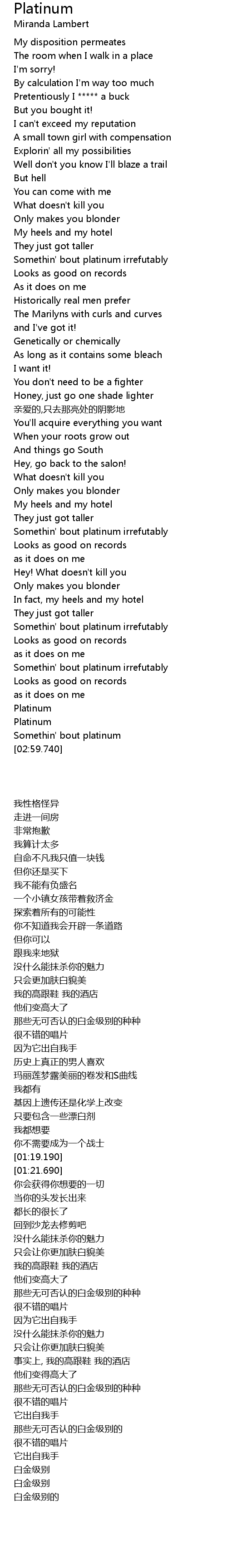 | [00:49.500] | Somethin' bout platinum irrefutably |