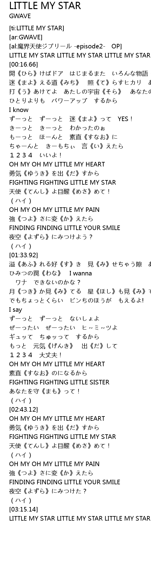 | [02:58.16] | FIGHTING FIGHTING LITTLE MY STAR |