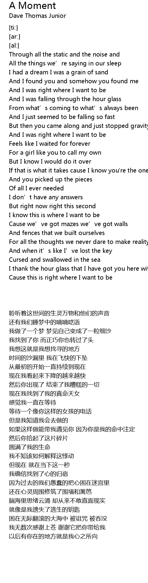 | [00:17.50] | I had a dream I was a grain of sand |