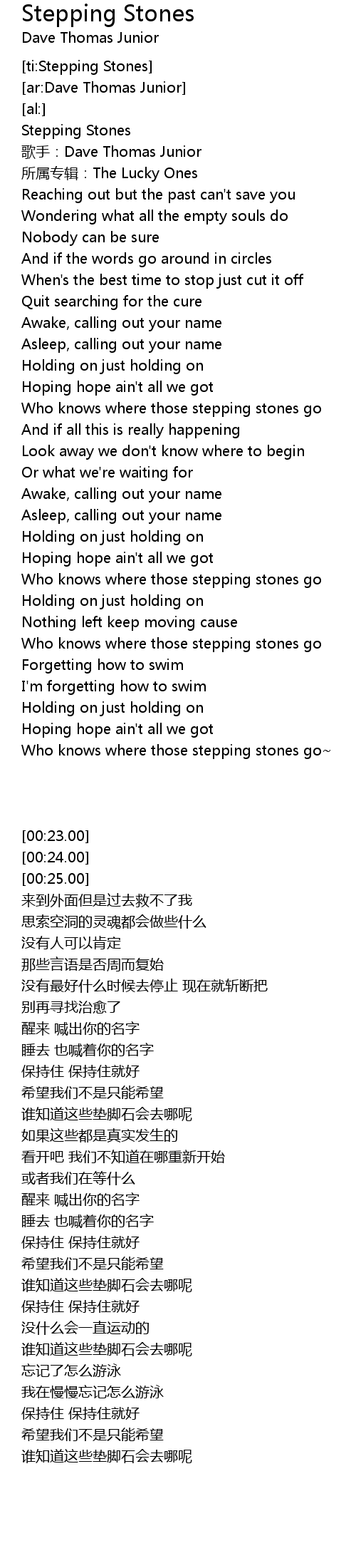 | [00:24.00] | 歌手:Dave Thomas Junior |