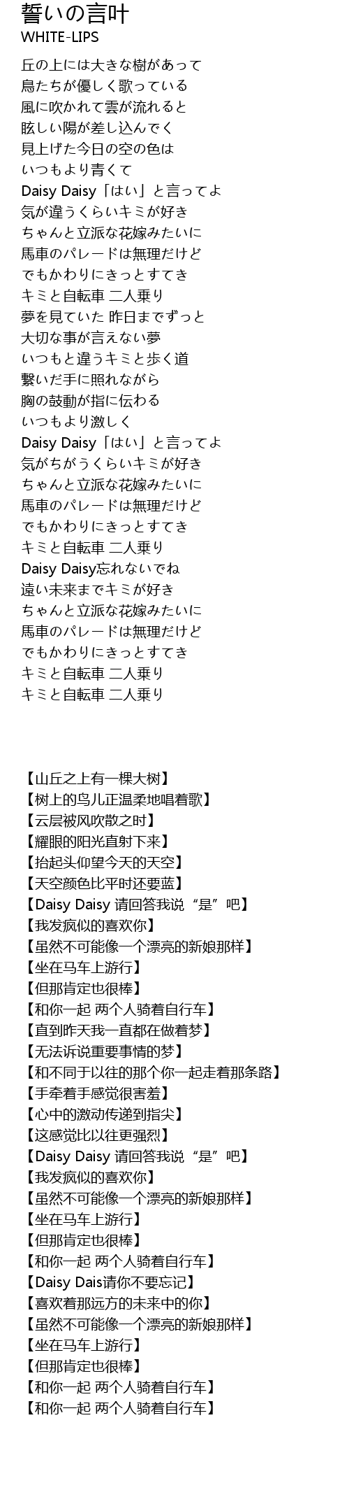 | [00:48.150] | Daisy Daisy「はい」と言ってよ |
