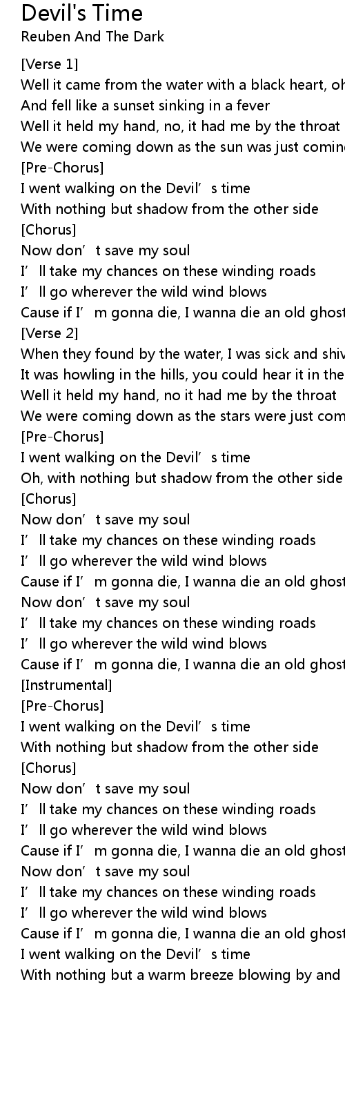| I went walking on the Devil' s time | |
