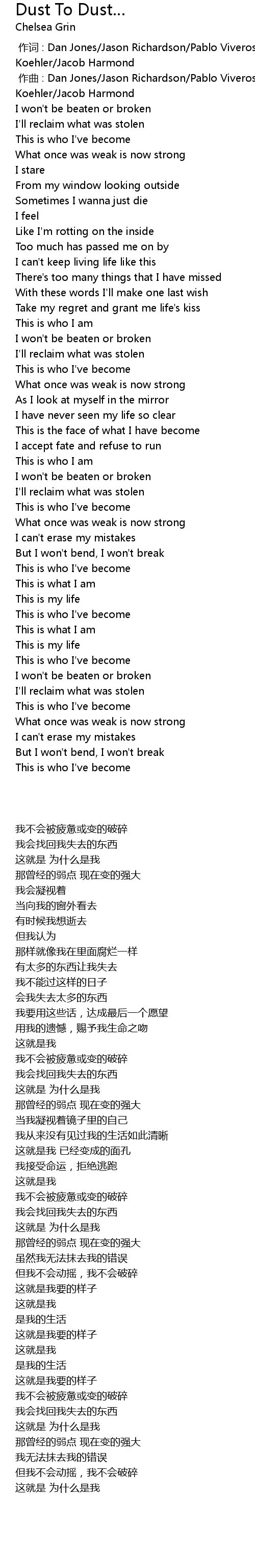 | [00:39.482] | I won't be beaten or broken |