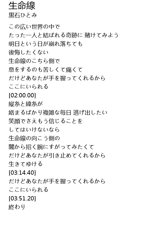 | [01:16.13] | だけどあなたが手を握ってくれるから |