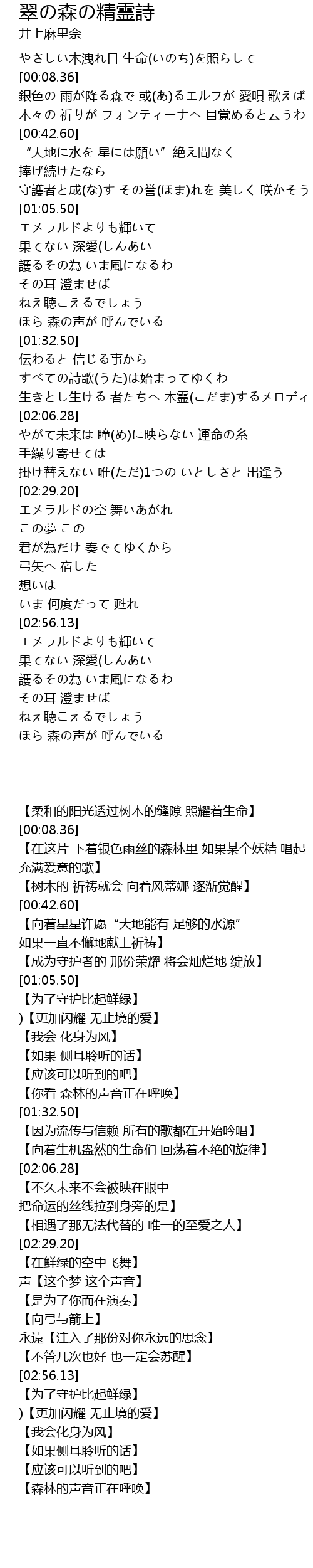 | [01:23.54] | ほら 森の声が 呼んでいる |