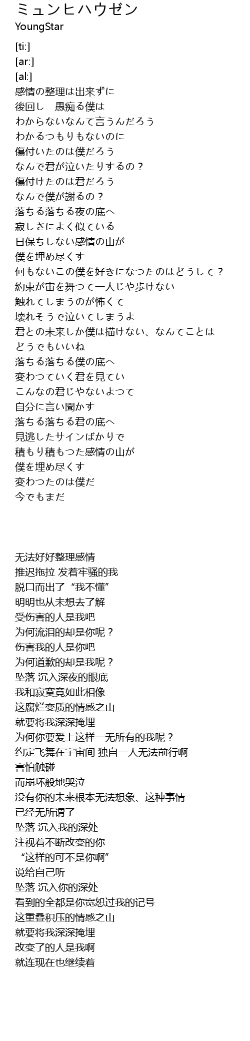 | [00:44.65] | 傷付いたのは僕だろう |