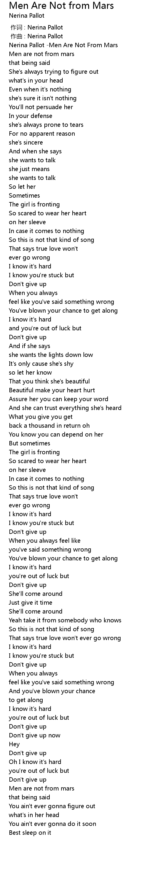 | [00:00.112] | Nerina Pallot Men Are Not From Mars |