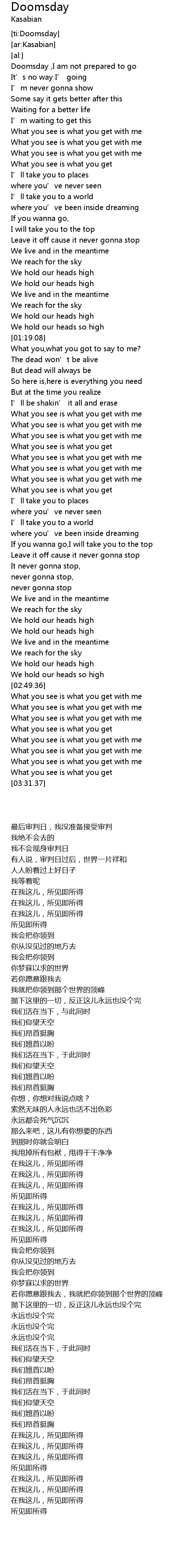| [00:10.68] | Doomsday , I am not prepared to go |