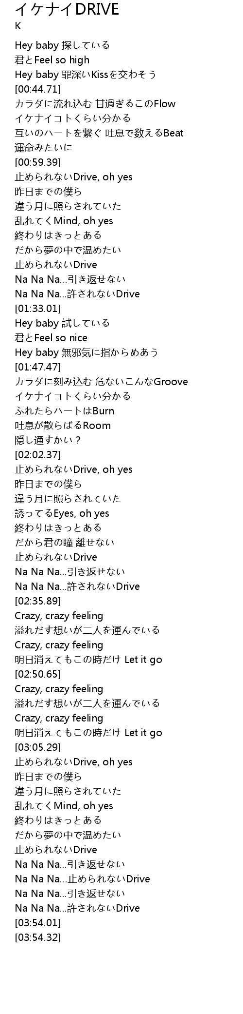 | [03:44.84] | Na Na Na...許されないDrive |