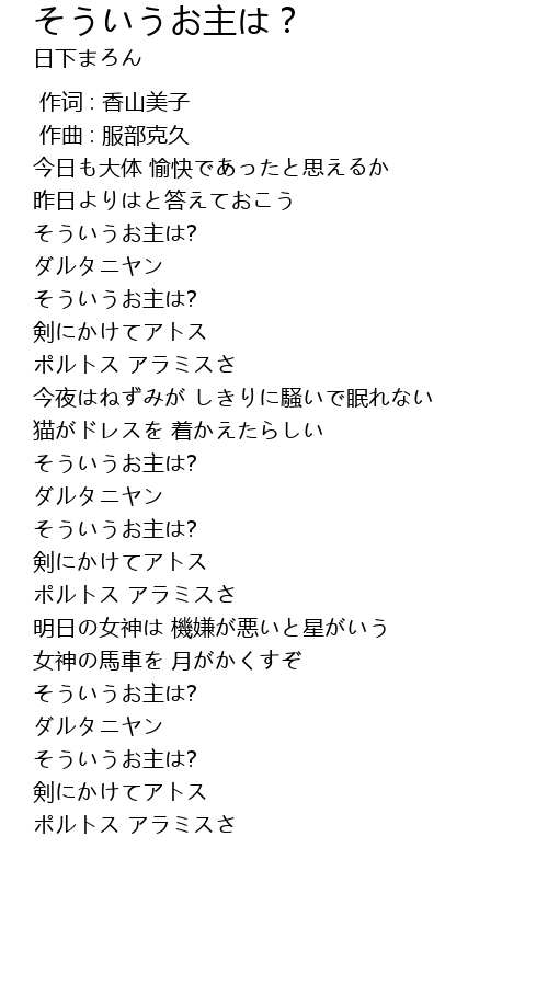 | [00:49.16] | 猫がドレスを 着かえたらしい |