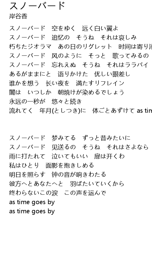 | 流れてく 年月(としつき)に 体ごとあずけて as time goes by | |