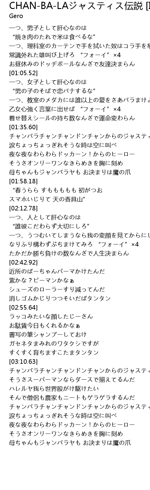 | [03:43.12] | チャンバラチャンチャンドンチャンからのジャスティス |