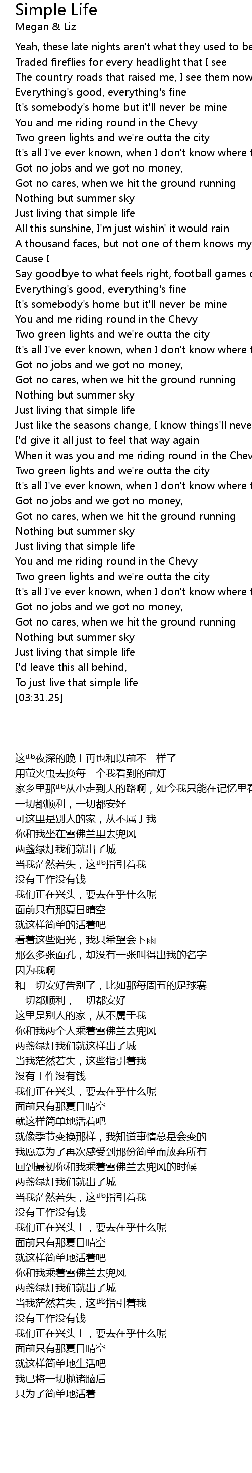 Simple Life Lyrics