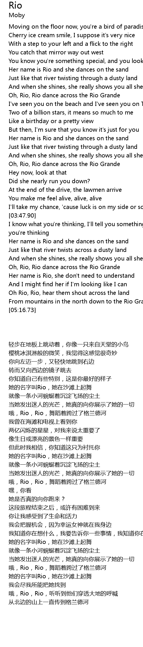 | [02:46.43] | Oh, Rio, Rio dance across the Rio Grande |