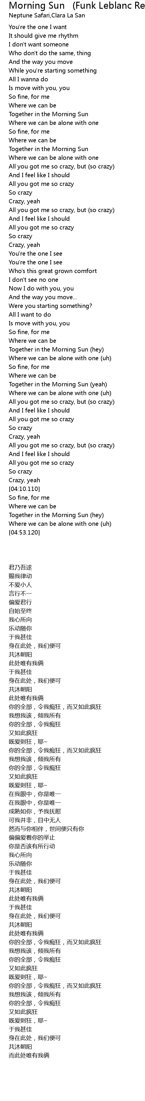Morning Sun (Funk Leblanc Remix) Lyrics