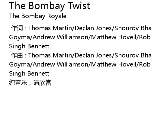 | [00:01.000] | 作曲 : Thomas Martin/Declan Jones/Shourov Bhattacharya/Julian Goyma/Andrew Williamson/Matthew Hovell/Robert Douglas-Sola/Joshua Bennett/Parvyn Singh Bennett |
