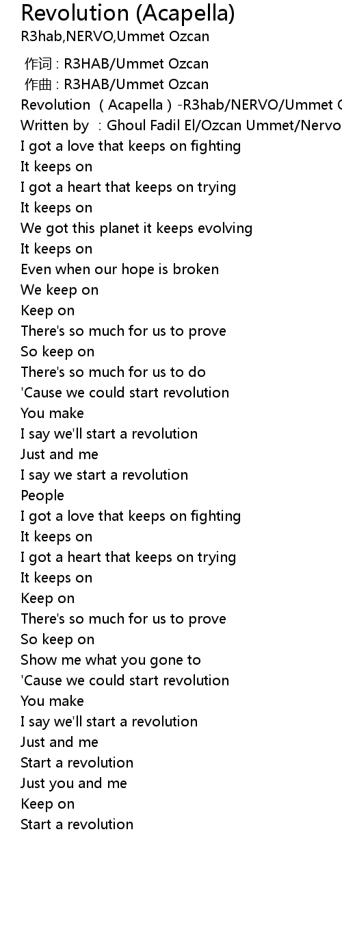 | [00:00.85] | Revolution (Acapella)-R3hab/NERVO/Ummet Ozcan |