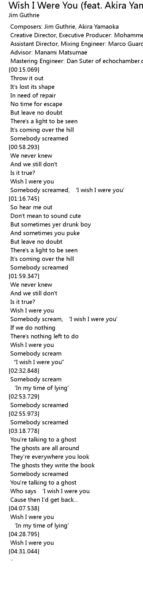| [02:14.038] | Somebody scream, ‘I wish I were you’ |