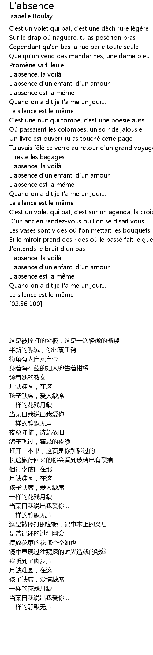 | [02:31.560] | L' absence d' un enfant, d' un amour |
