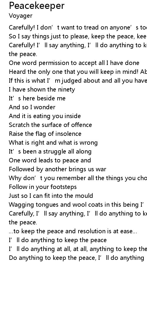 | Carefully, I’ll say anything, I’ll do anything to keep the peace, to keep the peace. | |