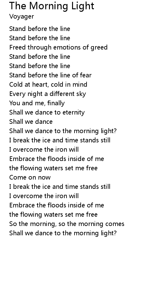 | Shall we dance to the morning light? |