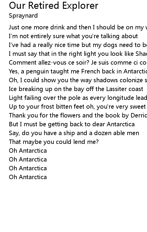 | Song | Our Retired Explorer |