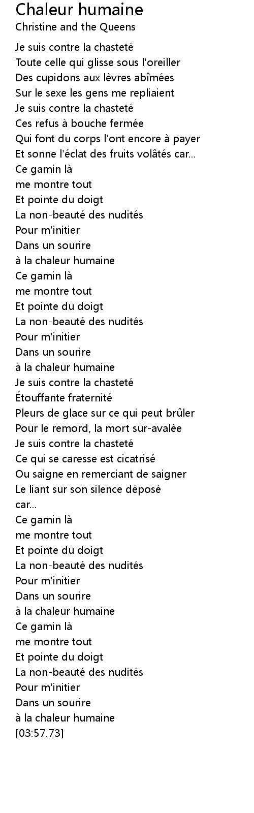 | [00:57.44] | Sur le sexe les gens me repliaient |