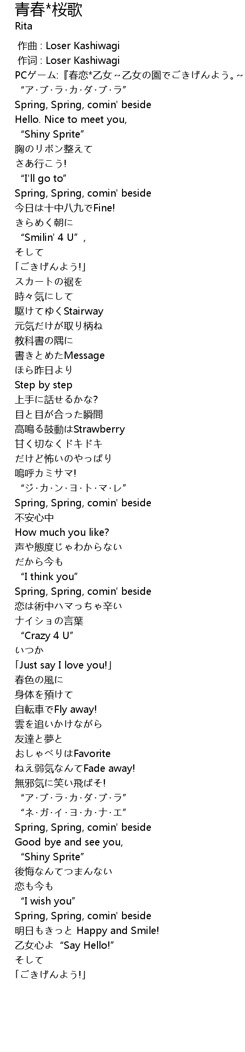 | [00:02.47] | PCゲーム:『春恋*乙女~乙女の園でごきげんよう。~』より |