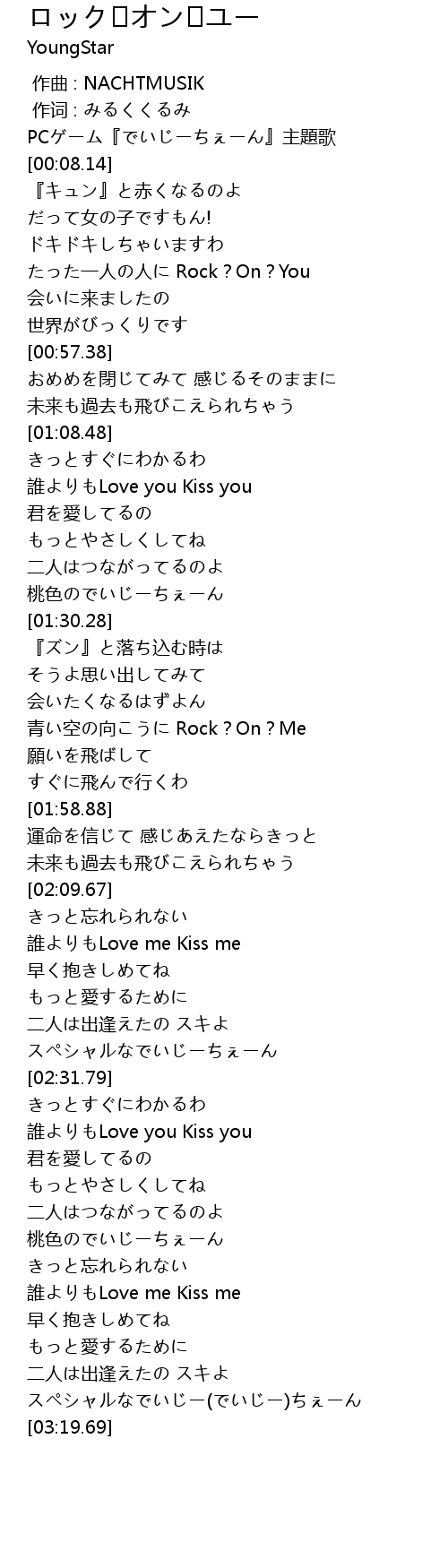 | [00:48.37] | たった一人の人に Rock?On?You |