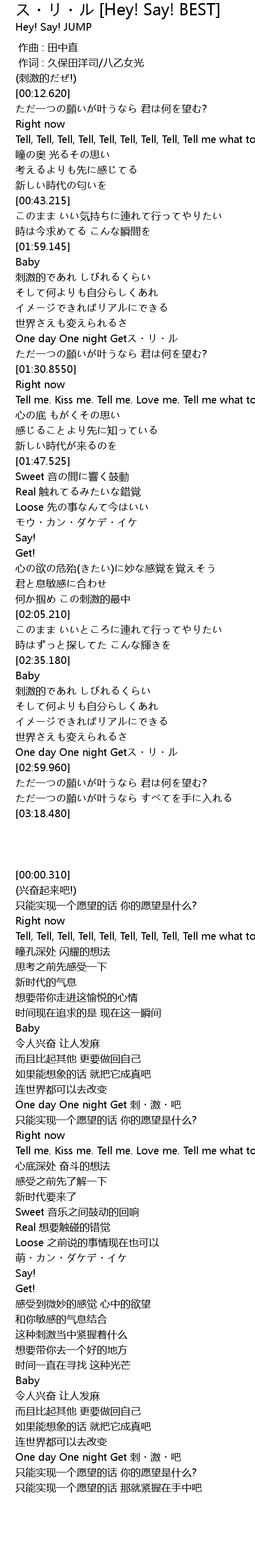 | Song | ス・リ・ル [Hey! Say! BEST] |