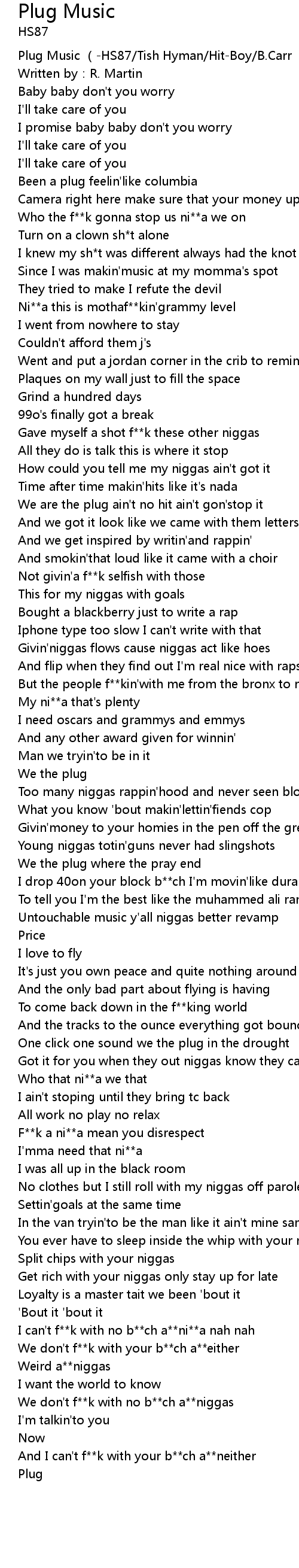 | [00:00.71] | Plug Music (-HS87/Tish Hyman/Hit-Boy/B.Carr |