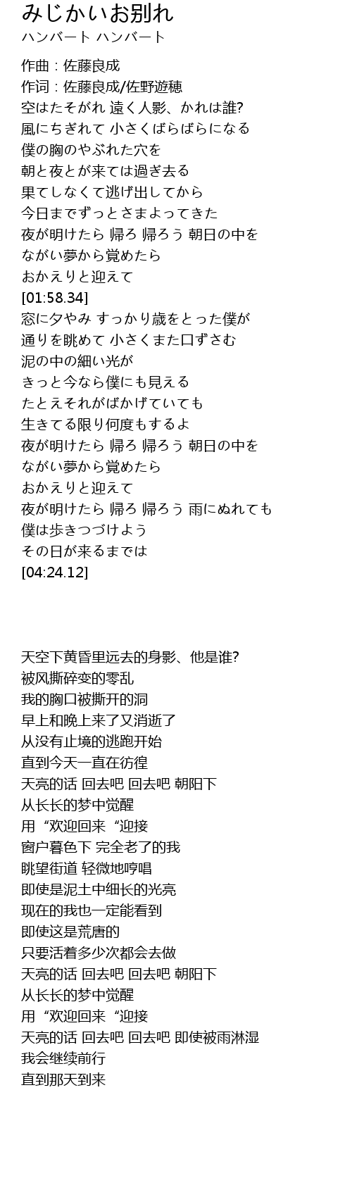 | [03:55.31] | 夜が明けたら 帰ろ 帰ろう 雨にぬれても |