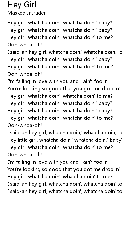 I said-ah hey girl, whatcha doin,' whatcha doin,' baby? |