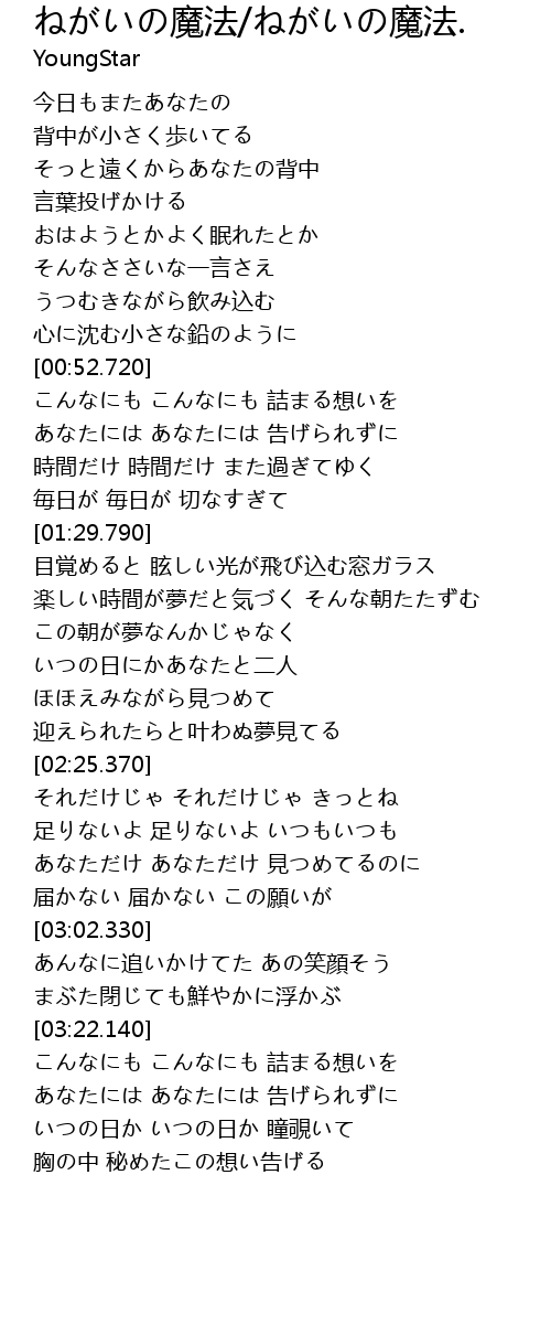 | [02:44.490] | あなただけ あなただけ 見つめてるのに |
