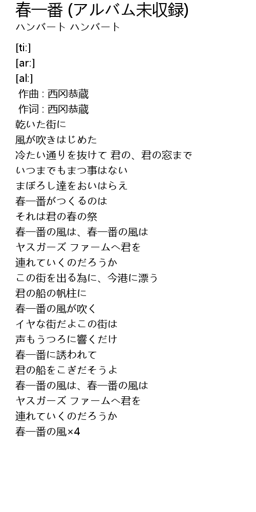 | [03:21.34] | 春一番の風×4 |