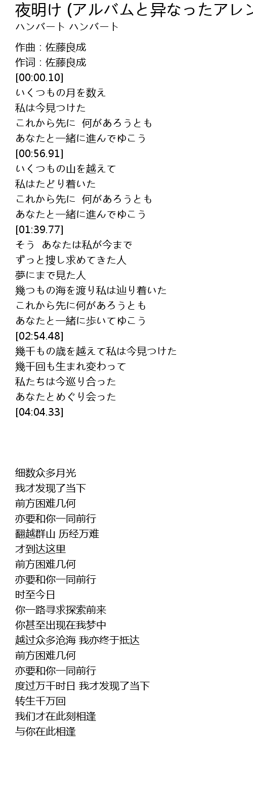 | [02:45.06] | あなたと一緒に歩いてゆこう |
