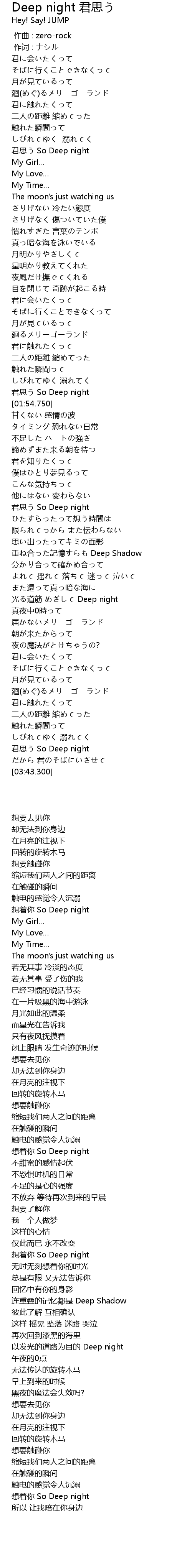 | [03:02.900] | 光る道筋 めざして Deep night |